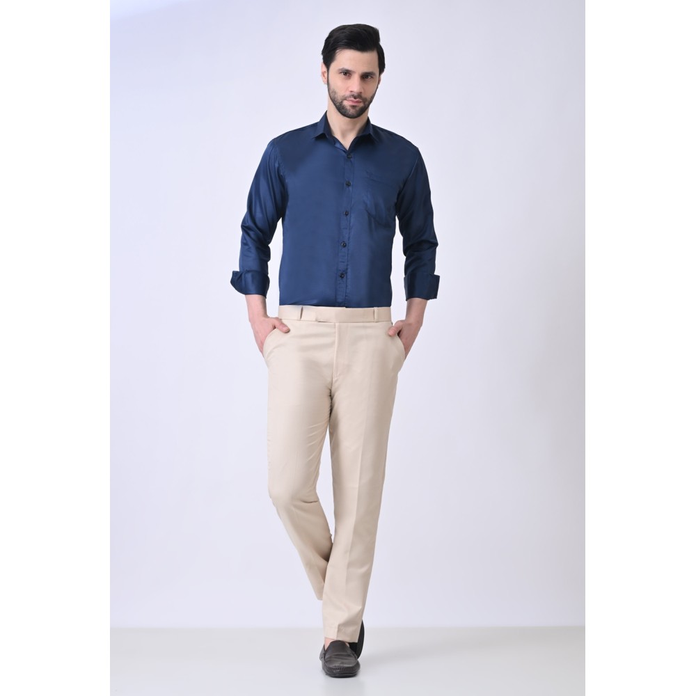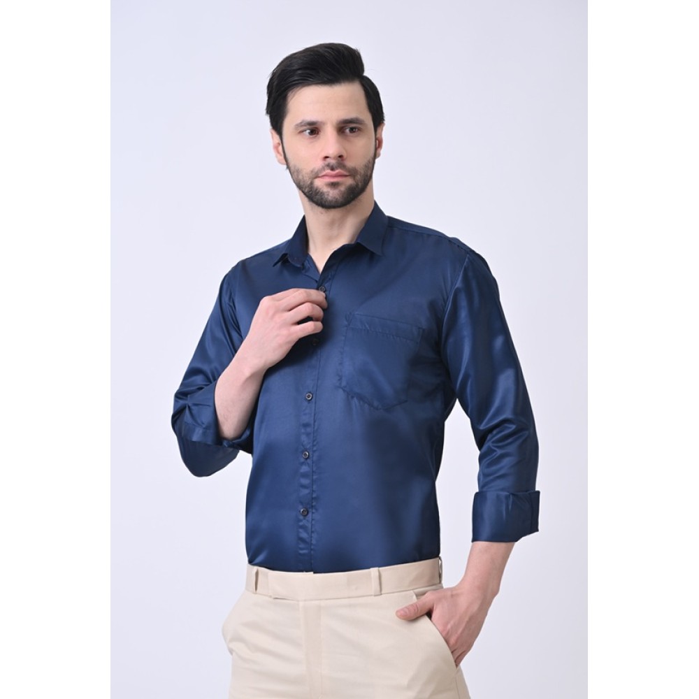 Verus Men's Satin Regular Fit Blue Formal Shirt